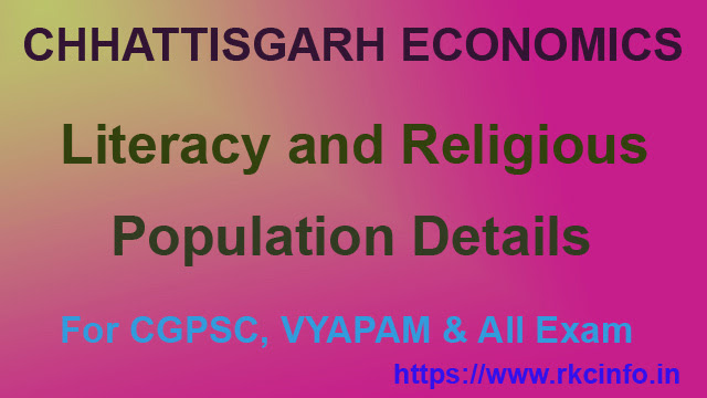 छत्तीसगढ़ साक्षरता और धार्मिक जनसंख्या : इसके पहले भाग में हमने छत्तीसगढ़ जनसंख्याँ वृद्धि दर एवं लिंगानुपात के विषय में पढ़ा । आज हम छत्तीसगढ़ की साक्षरता , नगरीय एवं ग्रामीण जनसंख्याँ, अनुसूचित जाति एवं जनजाति जनसंख्याँ, एवं अन्य धर्म सम्बन्धी जनसंख्याँ के विषय में पढेंगे ।