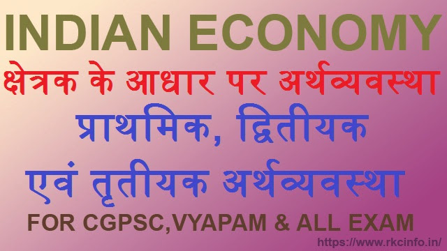 अर्थव्यवस्था का क्षेत्रक आर्थिक गतिविधियों से निर्धारित करते है – इसके तीन प्रकार है – 1. प्राथमिक अर्थव्यवस्था 2. द्वितीयक अर्थव्यवस्था 3. तृतीयक अर्थव्यवस्था ।